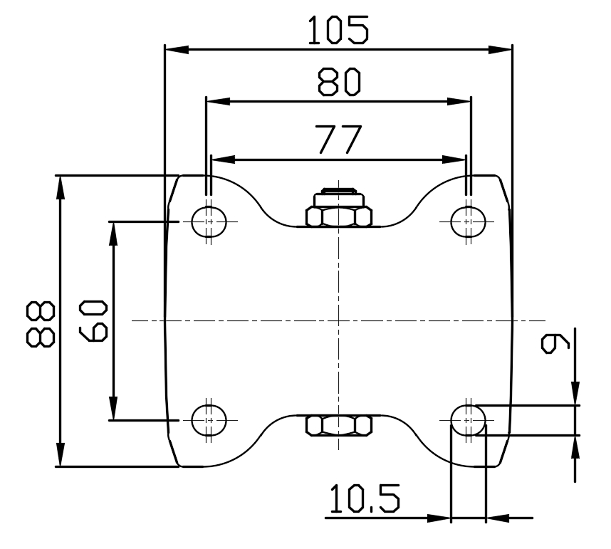 Rigid Caster with Stamping Fabricated Caster Fork 44.5 x 30mm (1-3/4" x 1-1/8") Bolt Hole Spacing. Zine-Plated, Mounting Type - Top Plate. Cast Iron Wheel Center with High Quality Polyurethane tread. Brown color, Bearing with Ball Bearing. |