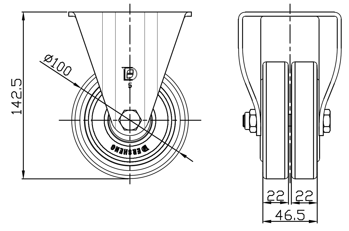Wheel Tread: high quality polyurethane Wheel Center: cast iron core Drawings are for reference only and may differ from the product |