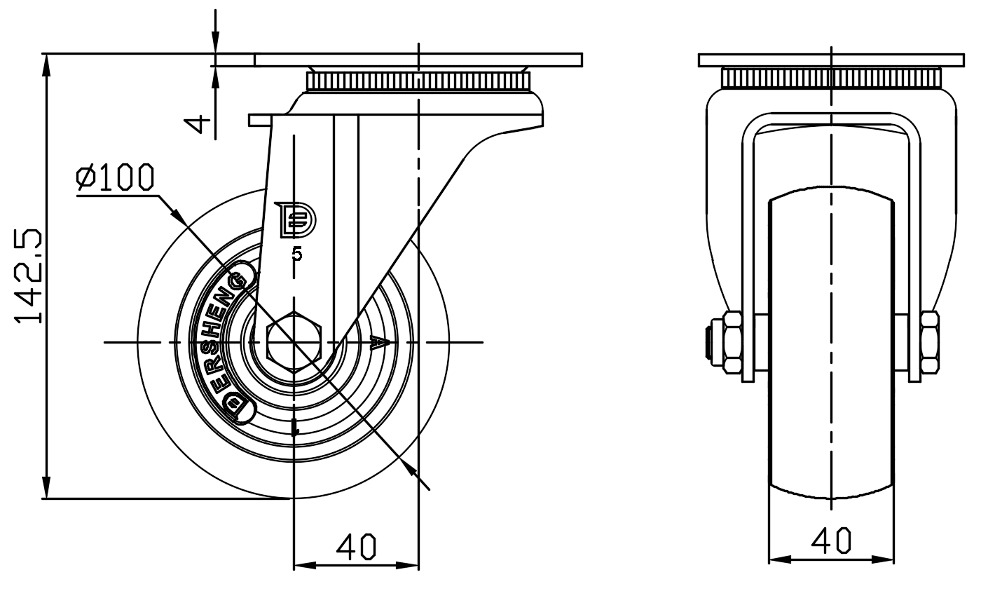 Wheel Tread: high quality polyurethane Wheel Center: aluminum core Drawings are for reference only and may differ from the product |