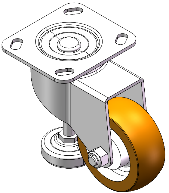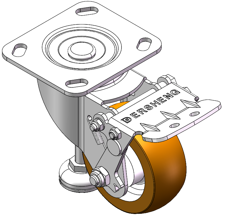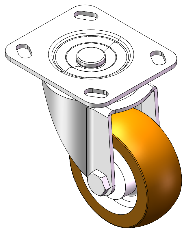 Swivel Caster with Riveted Fork and Stamping Fork with 85 x 70mm (3-3/8" x 2-3/4") Bolt Hole Spacing. Zine-Plated, Fork-mount Mounting Type. Aluminum core with High Quality Polyurethane tread. Brown color, Bearing with Ball Bearing. |