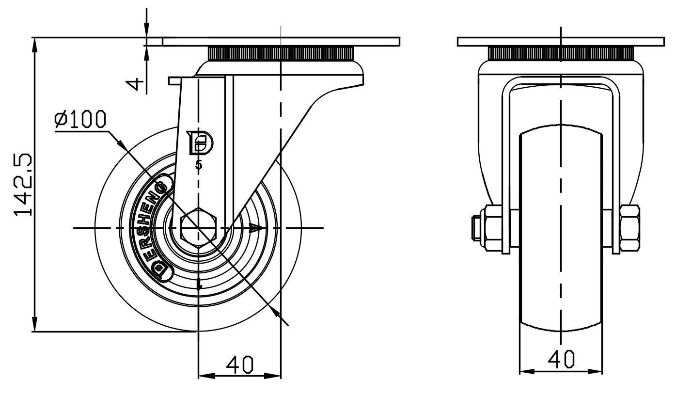Wheel Tread: high quality polyurethane Wheel Center: aluminum core Drawings are for reference only and may differ from the product |