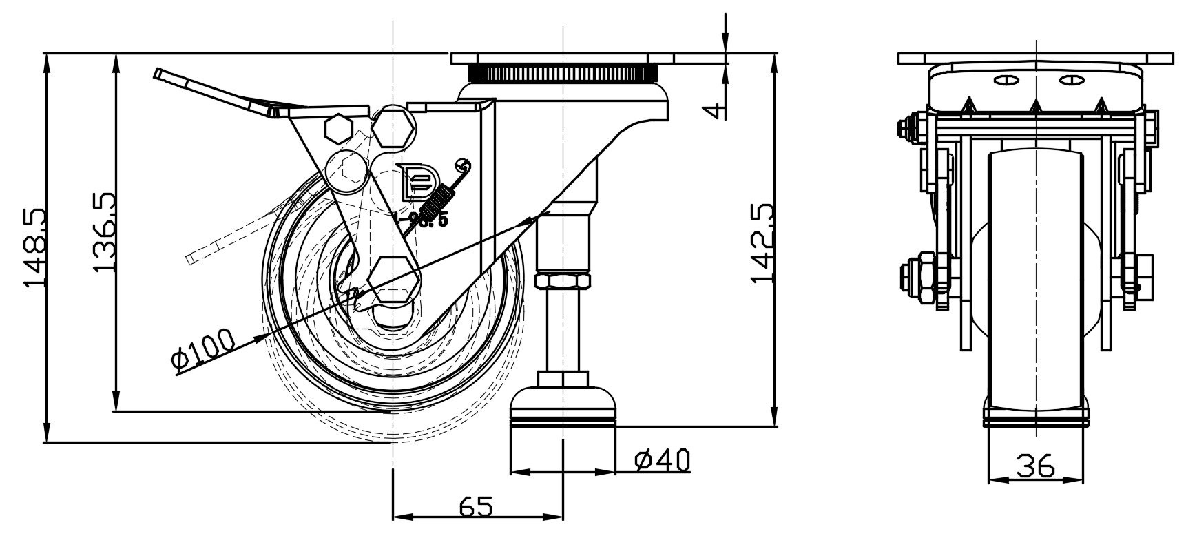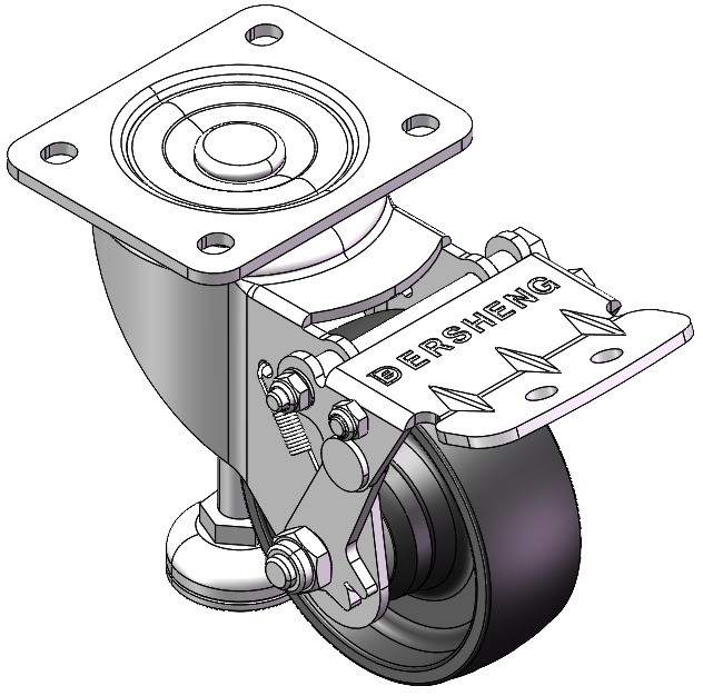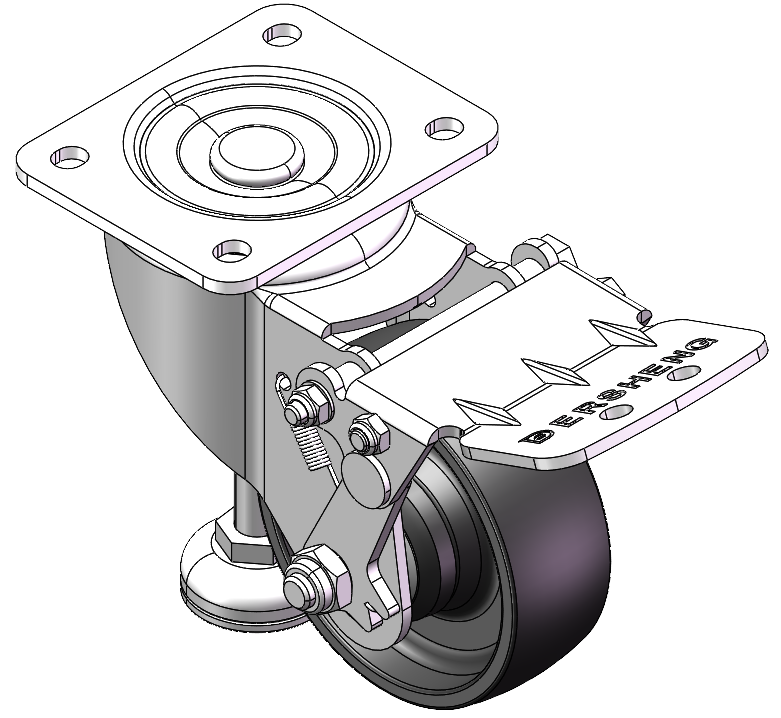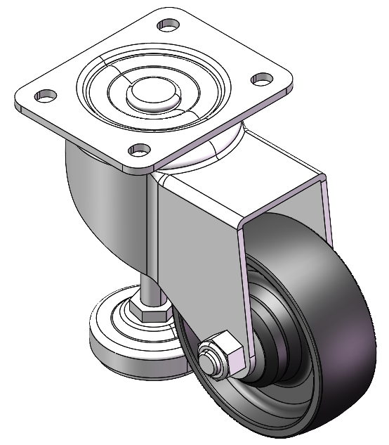 Height Adjustable Leveling Caster, Top Plate with Riveted, Fork 44.5 x 30mm (1-3/4" x 1-1/8") Bolt Hole Spacing, Long Pedal Zine-Plated, Mounting Type - Top Plate, Height Adjustable Stand Reinforced Polypropylene and tread Black, Bearing with Ball Bearing. |