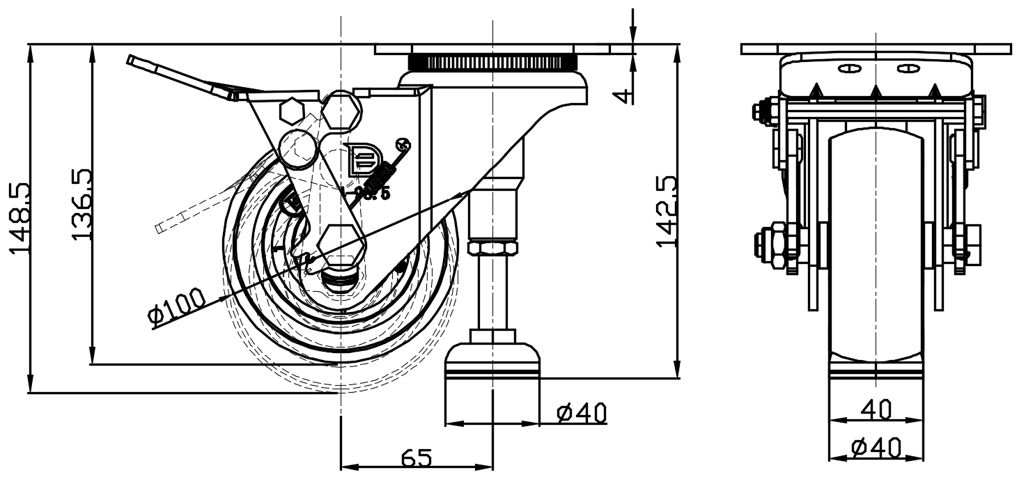 Wheel Tread: high quality polyurethane Wheel Center: aluminum core Drawings are for reference only and may differ from the product |