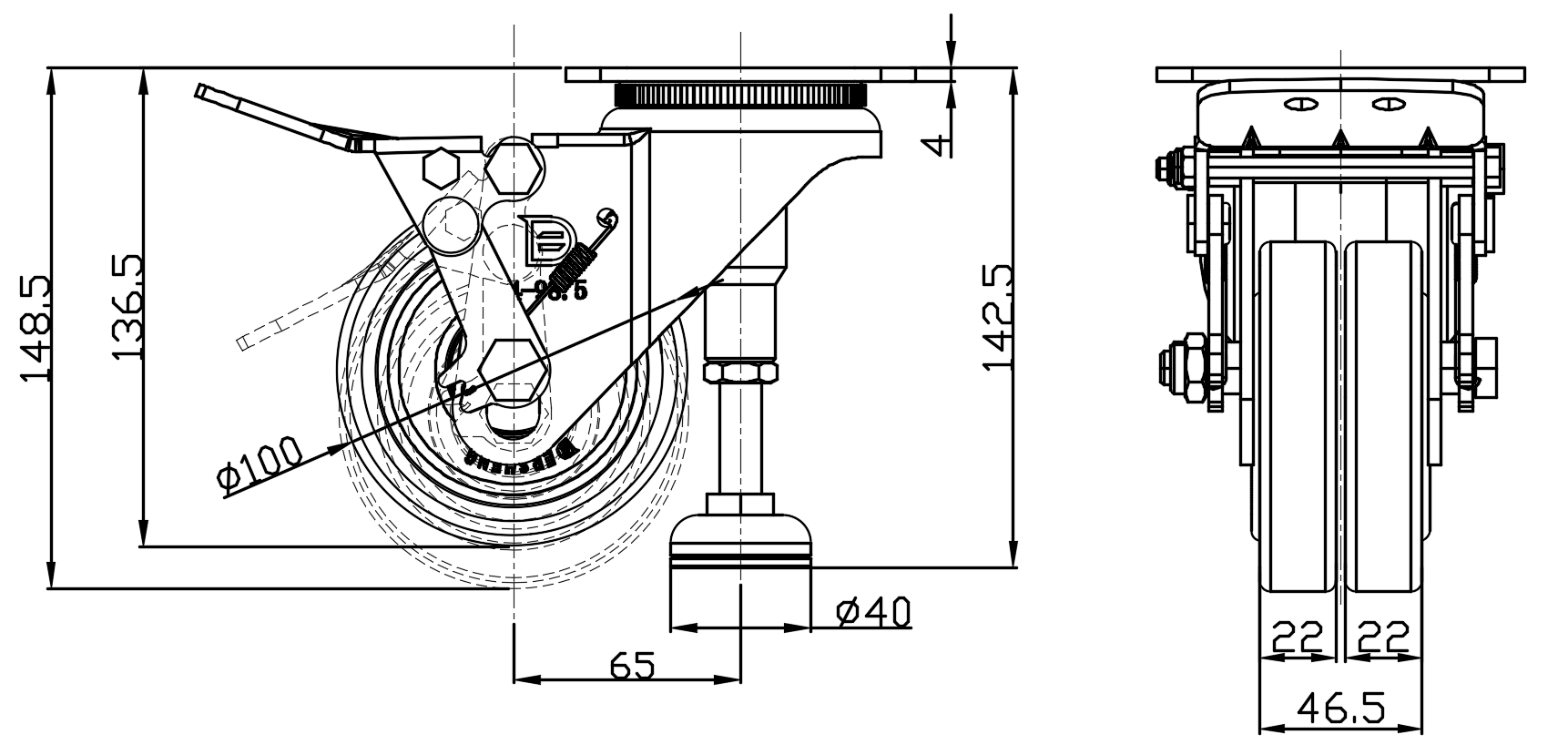 ZQPU (brown round) Wheel Diameter x Wheel Width 100 x 22 (46.5) mm |