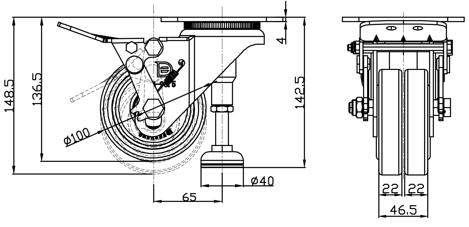 ZQPU (brown round) Wheel Diameter x Wheel Width 100 x 22 (46.5) mm |