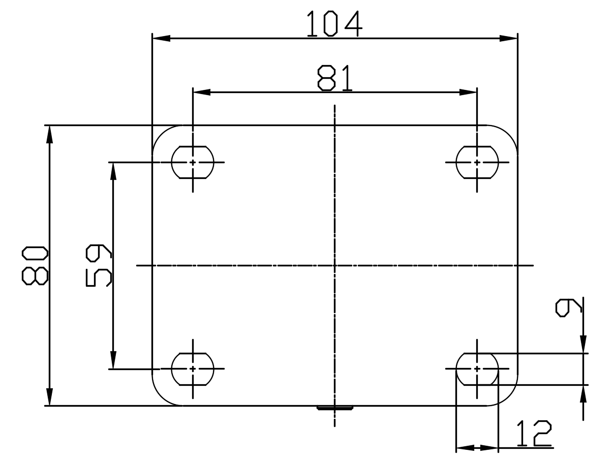 | 固定式腳輪,腳片焊接式腳架—歐規孔 表面鍍鋅,底板式(4T)安裝裝置 熱可塑性塑膠輪芯、輪面 黑色,輪子軸承—精密滾珠。 |