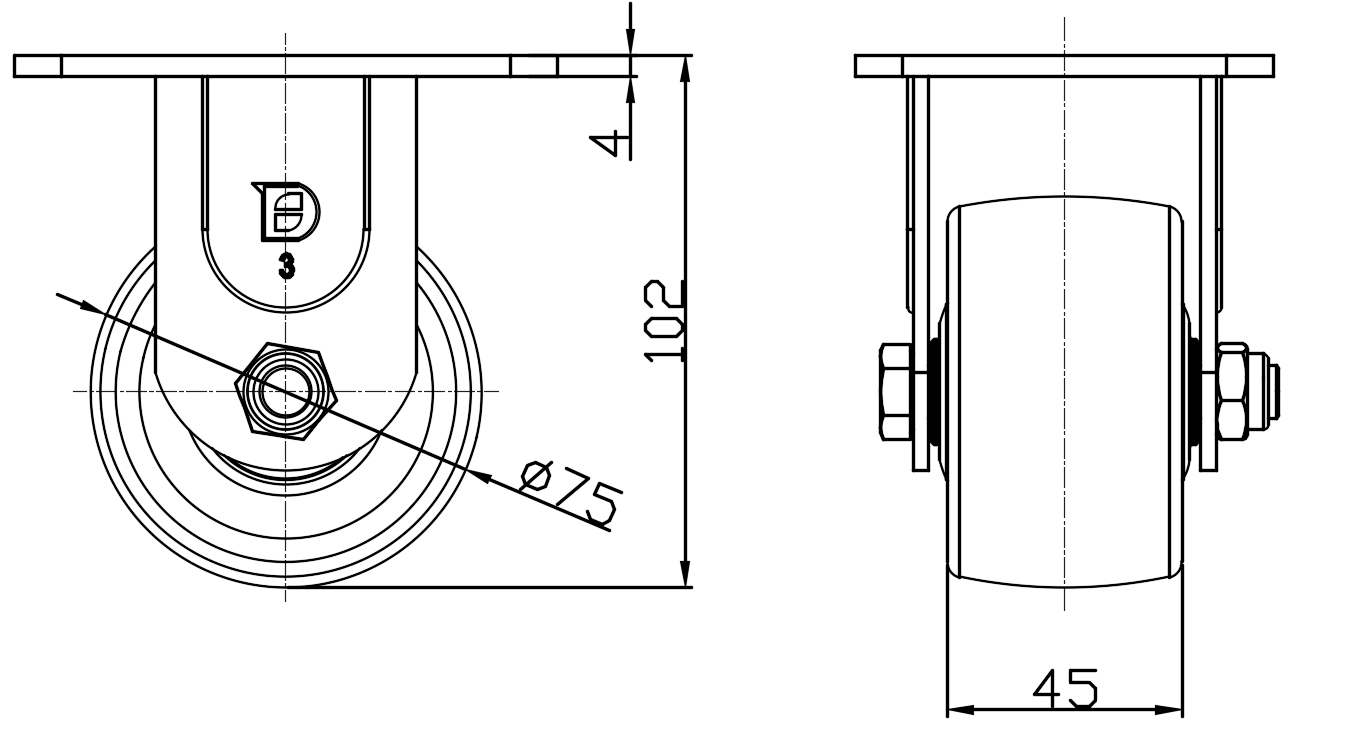 | Bánh xe cố định, đế bánh xe hàn với các lỗ tiêu chuẩn Châu Âu
