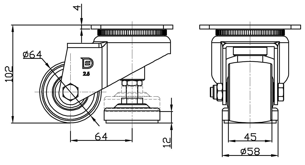 | 1168 Series — BÁNH XE CHÂN TĂNG CHỈNH |