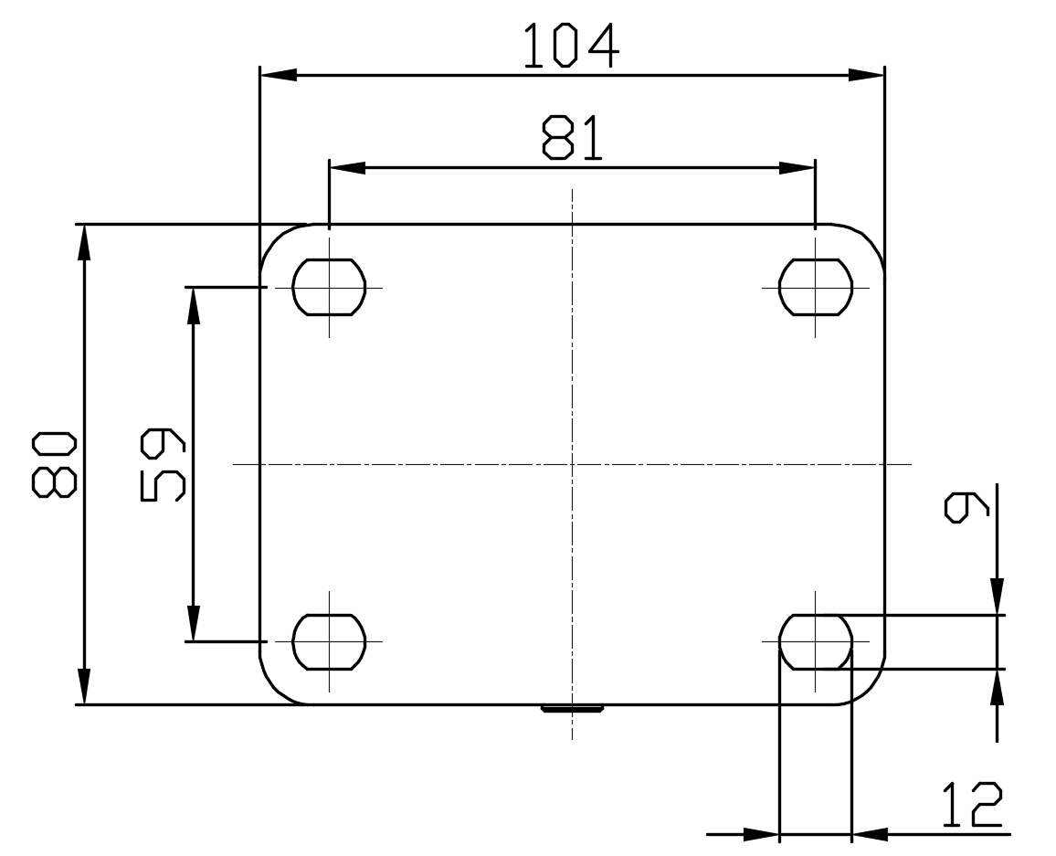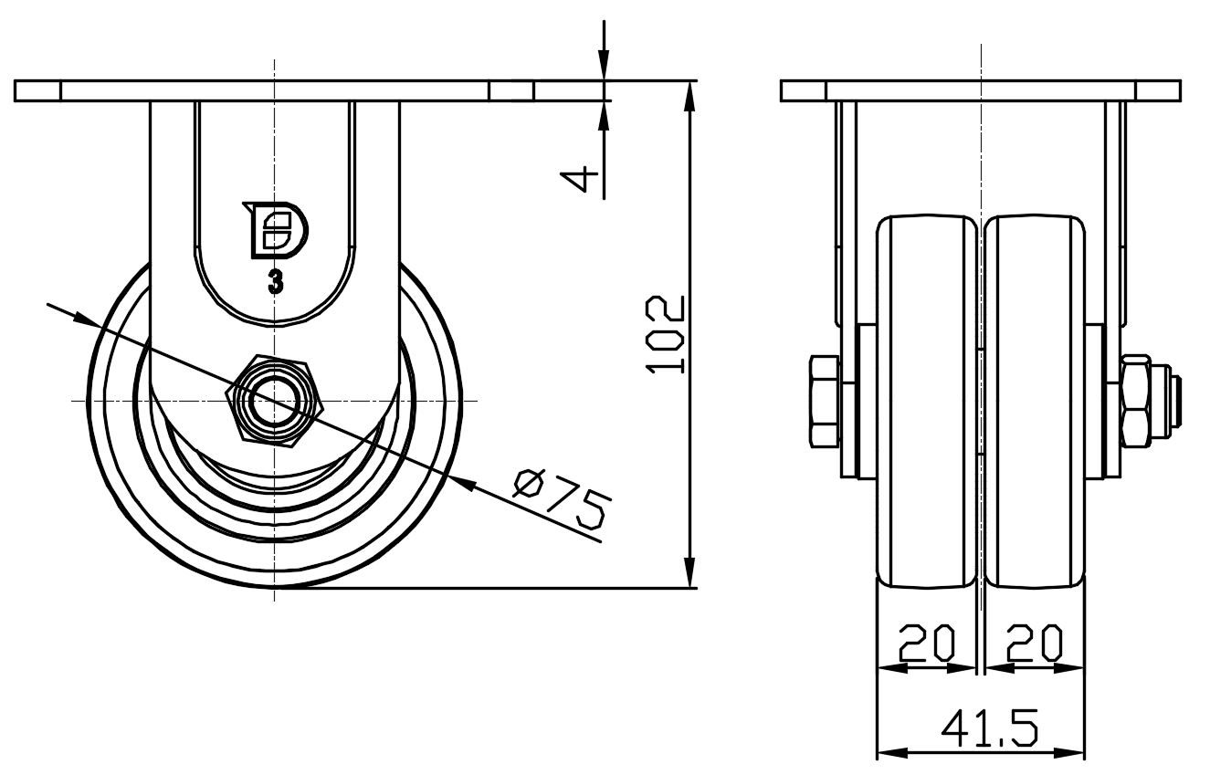 | Bánh xe cố định, đế chân hàn với các lỗ tiêu chuẩn Châu Âu