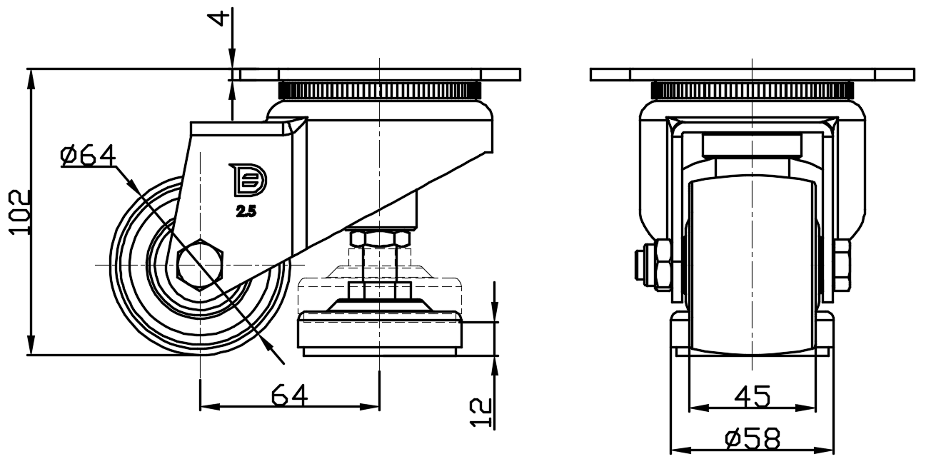 1168 Series — BÁNH XE CHÂN TĂNG CHỈNH |