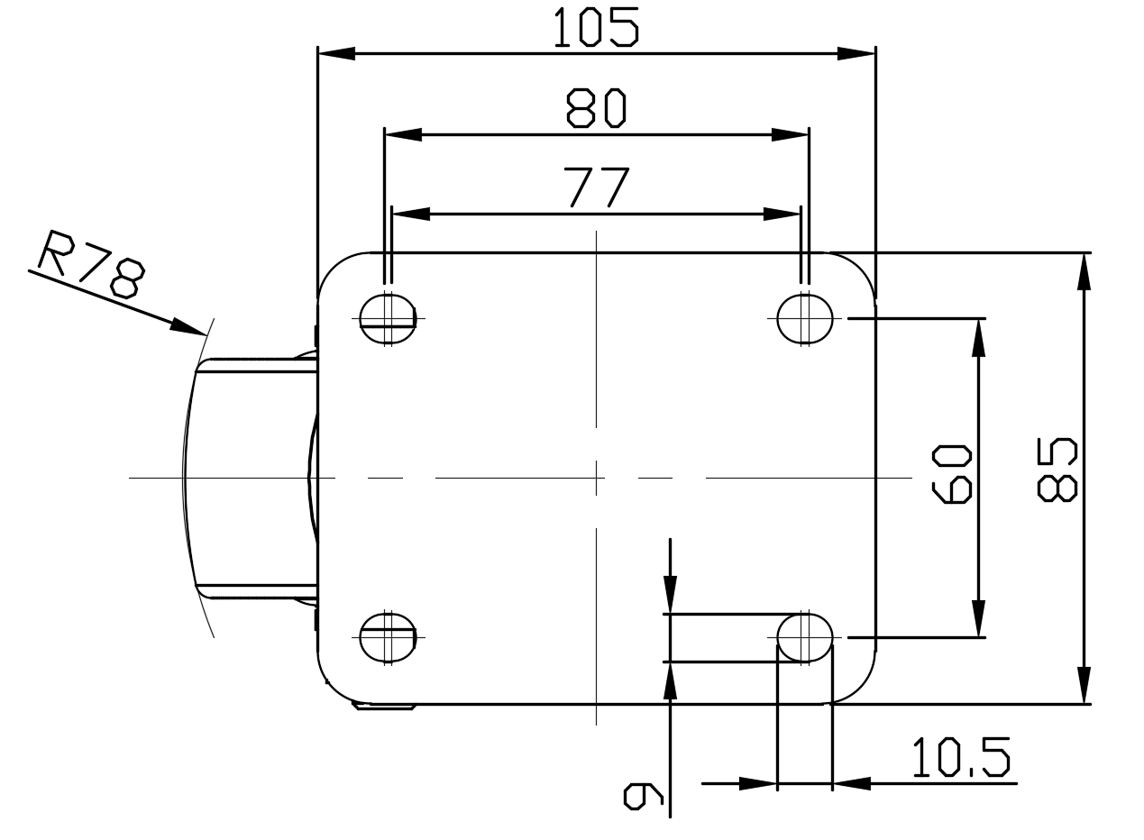 Bánh xe xoay có đế đinh tán và giá đỡ dập—lỗ tiêu chuẩn Châu Âu