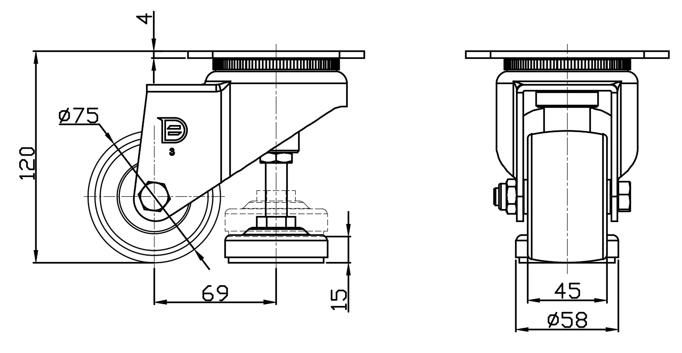1168 Series — BÁNH XE CHÂN TĂNG CHỈNH |