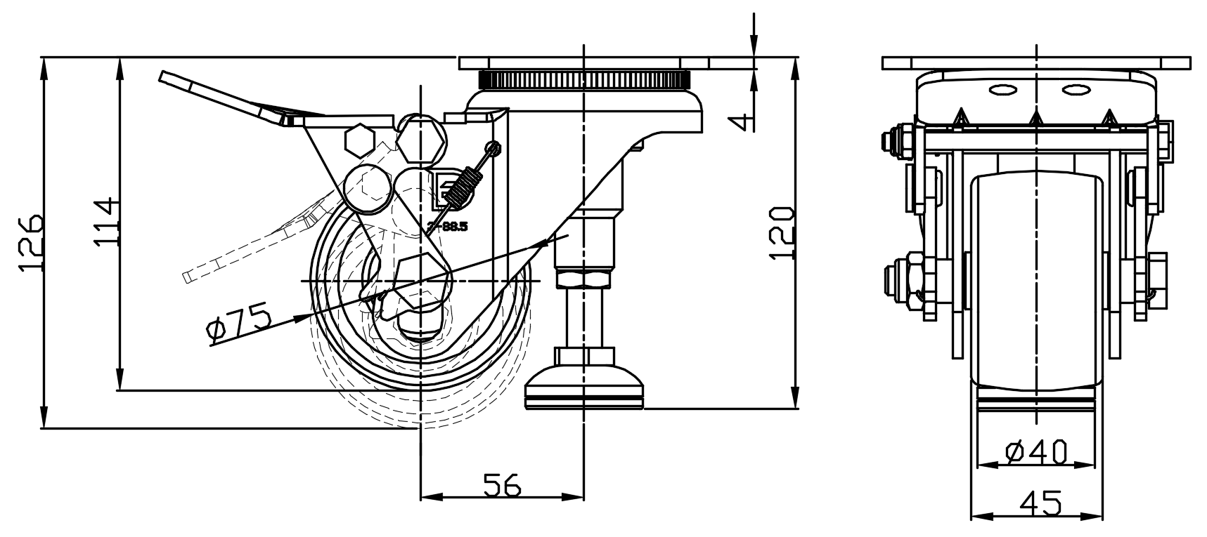1168 Series — BÁNH XE CHÂN TĂNG CHỈNH |