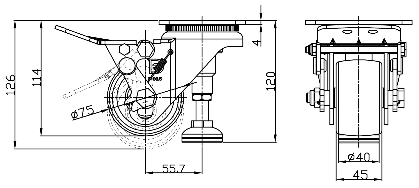 1168 Series — BÁNH XE CHÂN TĂNG CHỈNH |