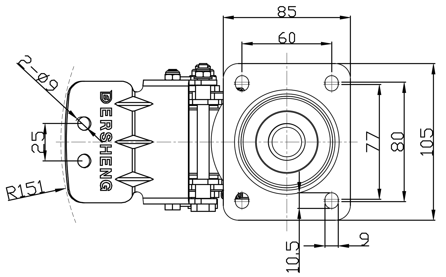 Hoàn thiện mạ kẽm, lắp đế bánh xe, đế đỡ có thể điều chỉnh Lõi bánh xe bằng gang với gai polyurethane chất lượng cao Màu xanh lam, ổ trục bánh xe với ổ bi chính xác. |