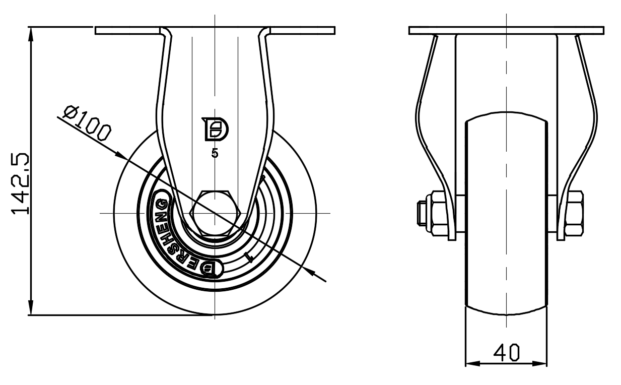 Bánh xe cố định, khung chân dập một mảnh - Lỗ chữ D