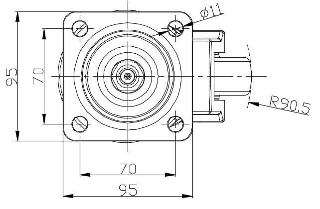 Swivel Caster with Riveted die-cast Fork and integrated Fork—42 x 42" Bolt Hole Spacing.