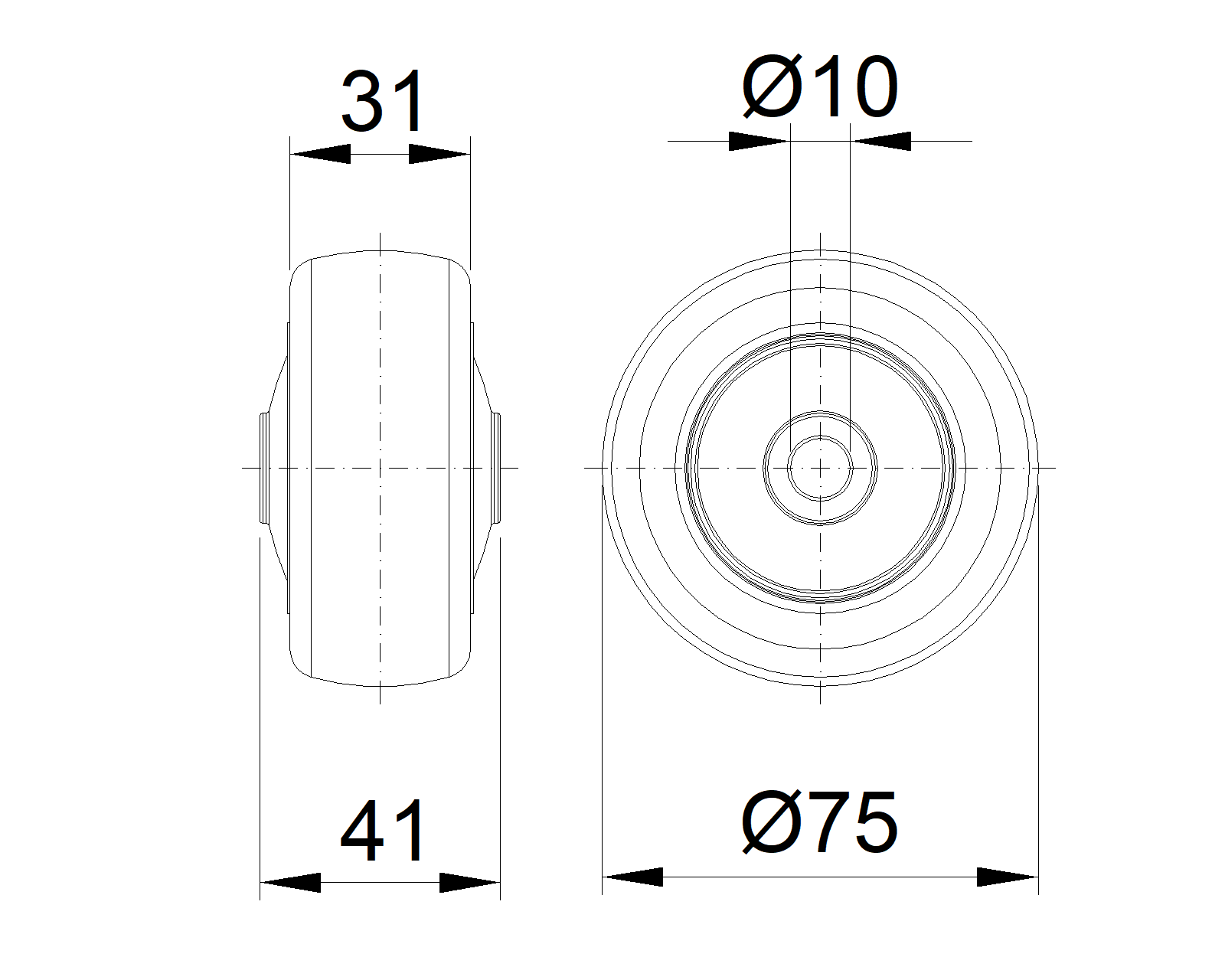公制 英制 轮径(D) 75mm 轮宽(T2) 31mm |