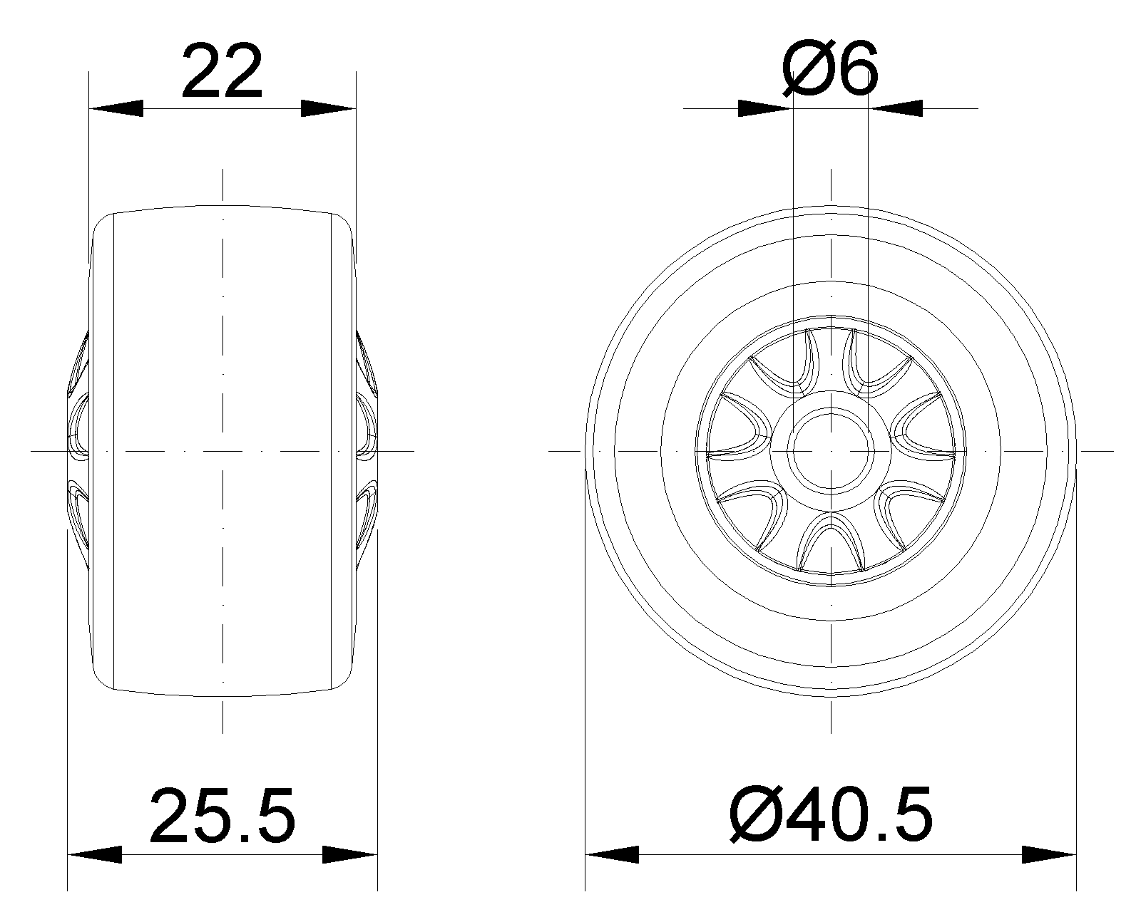 đơn vị mét đế quốc Đường kính bánh xe(D) 40.5mm Chiều rộng bánh xe(T2) 22.5mm |