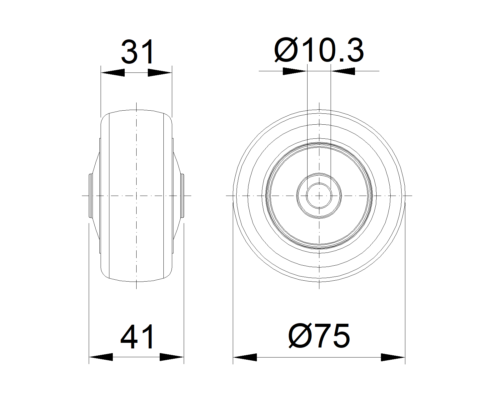 | Bánh xe PPR (Cung đen-đen) Đường kính bánh × Chiều rộng bánh 75×31mm |