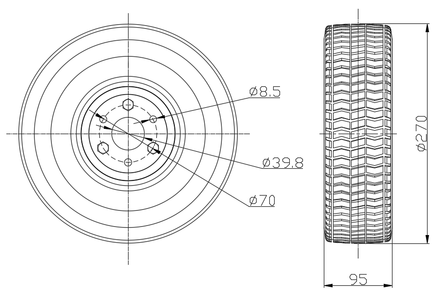 đơn vị mét đế quốc Đường kính bánh xe(D) 270mm Chiều rộng bánh xe(T2) 95mm |