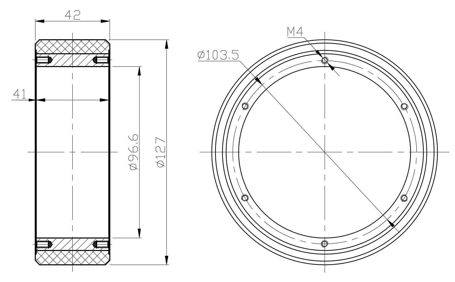 公制 英制 轮子直径(D) 127mm 轮子宽度(T2) 42mm |
