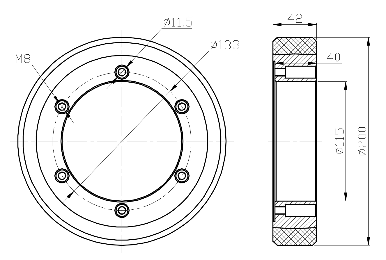 Metric Imperial Wheel Diameter(D) 200mm Wheel Width(T2) 42mm |