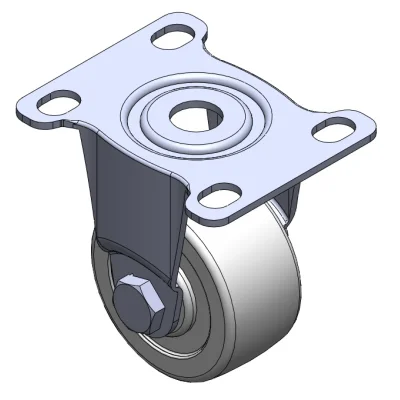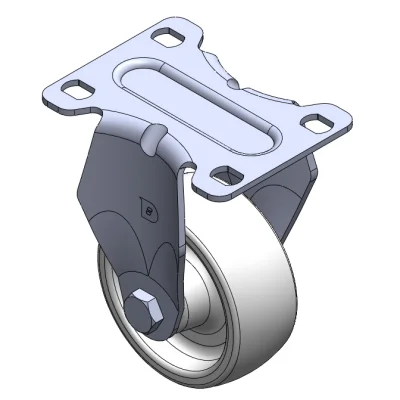固定式脚轮,一体成型冲压脚架 表面振动,底板式安装装置 热可塑性塑料轮芯、轮面 白色,轮子—中管式。