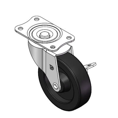 配有侧(轮)煞式,锁定系统的脚轮。底板铆合冲压脚架—孔距56x28