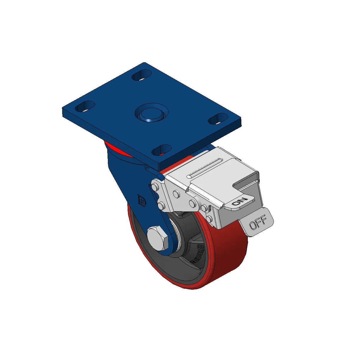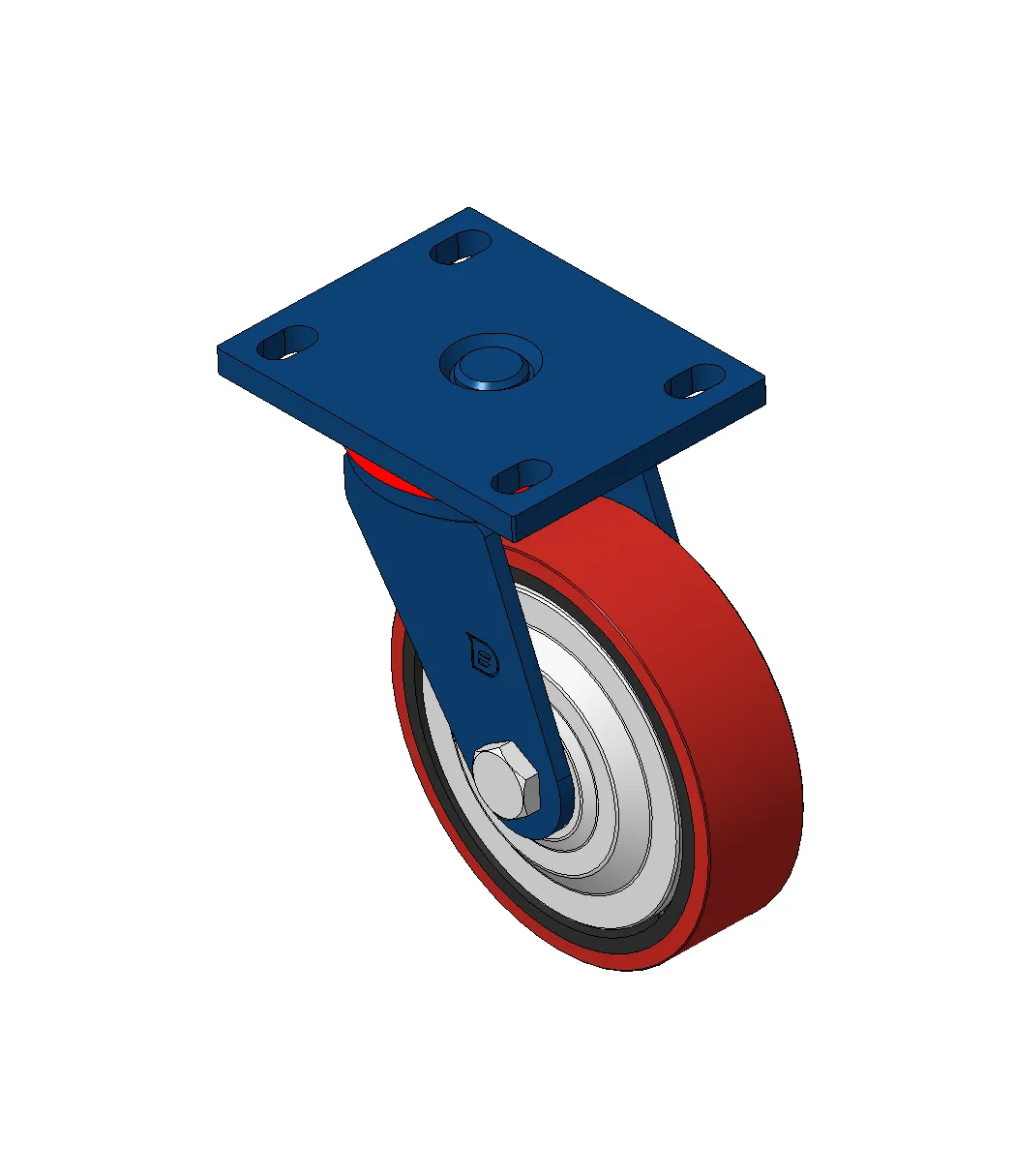 铸铁制轮芯,高质量聚氨酯轮面,铣红色