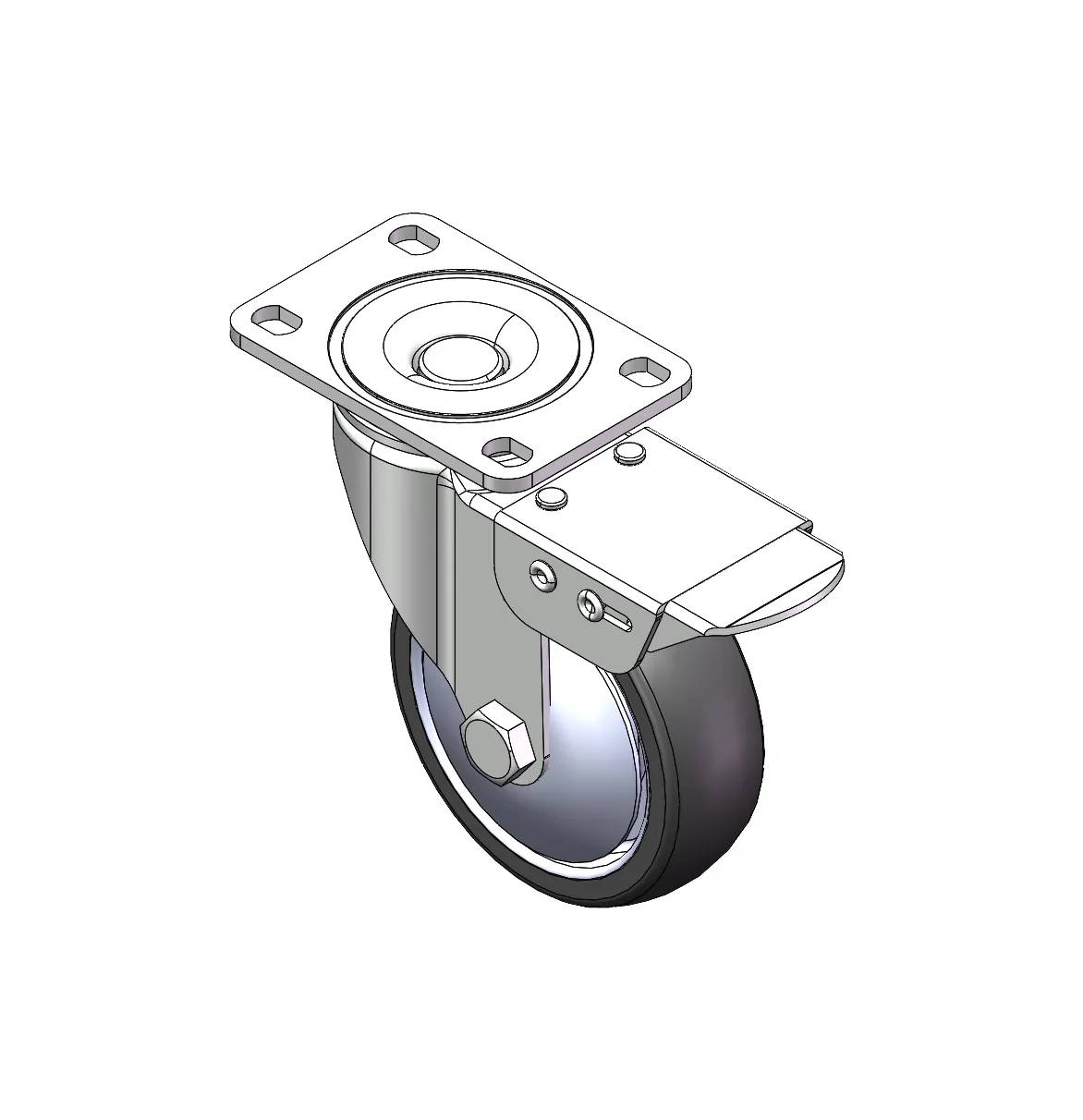 配有侧(轮)煞式,锁定系统的脚轮。底板铆合冲压脚架—高级孔