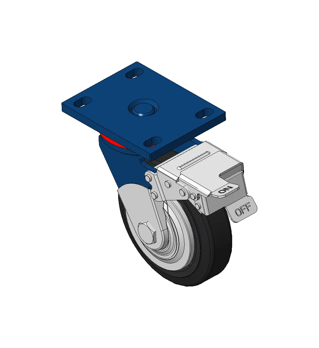 铸铁制轮芯,高品质高弹性橡胶轮面,铣黑色