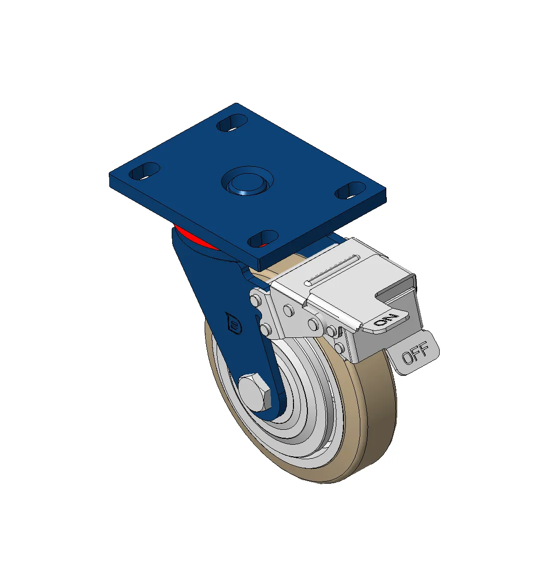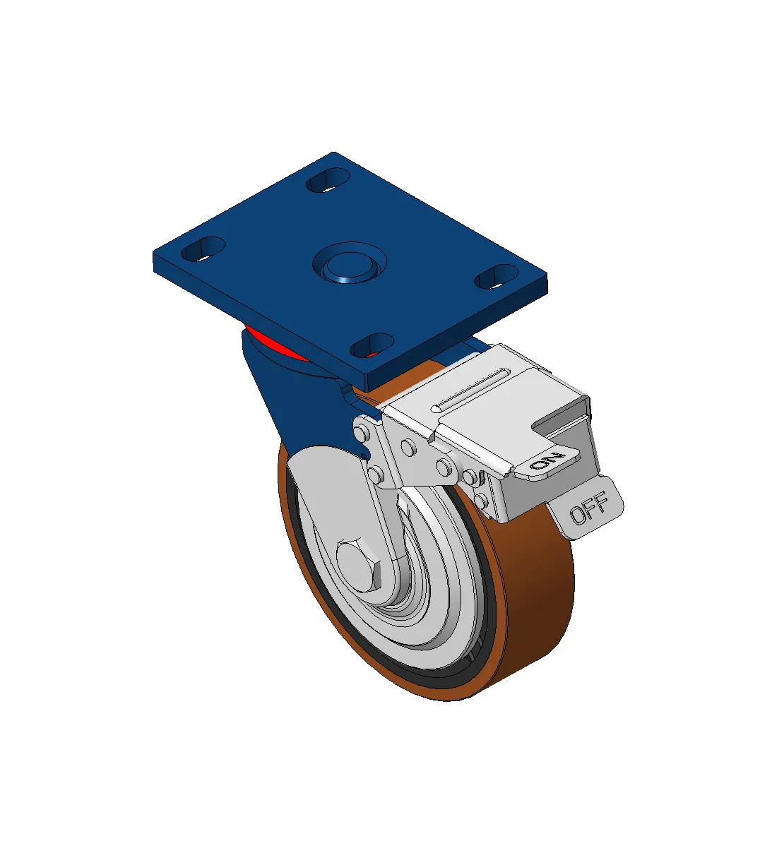 铸铁制轮芯,高质量聚氨酯轮面,铣褐色