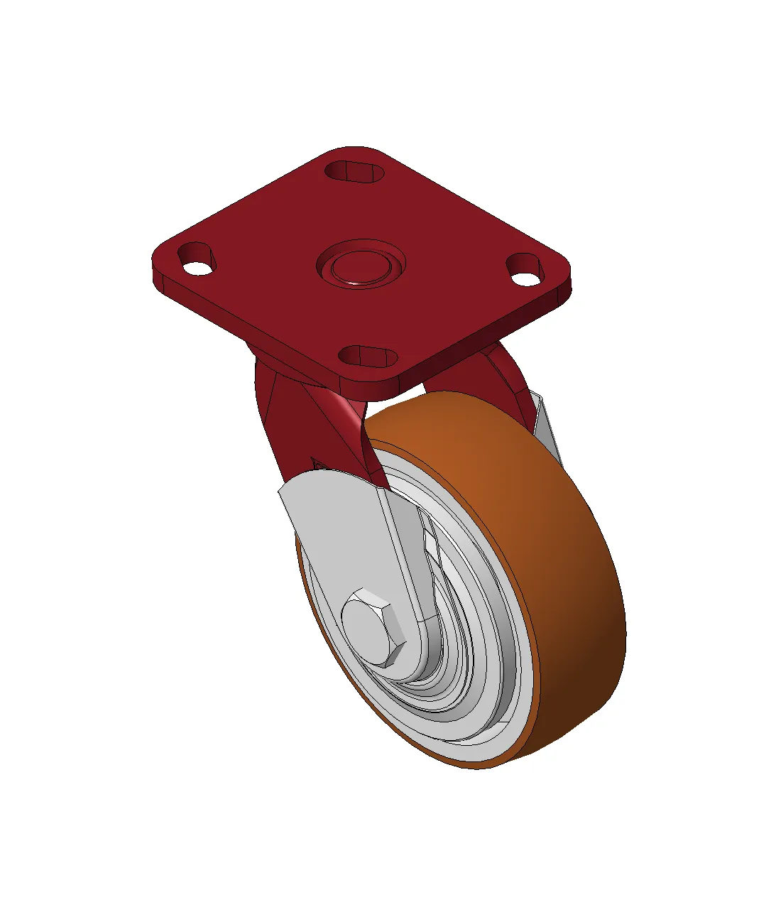 铸铁制轮芯,高品质聚氨酯轮面,铣褐色