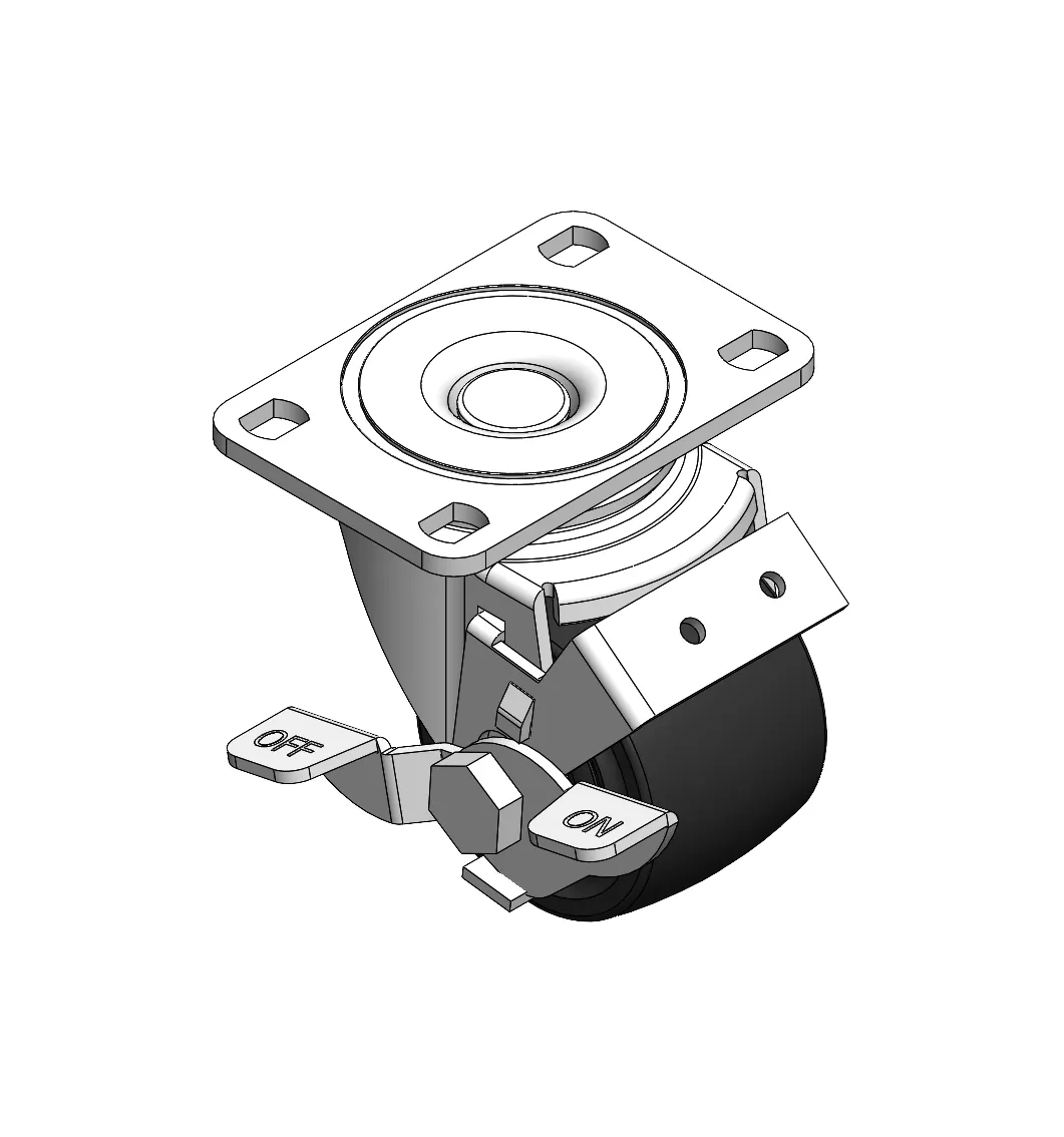 配有侧(轮)煞式,锁定系统的脚轮。底板铆合冲压脚架—高级 孔
