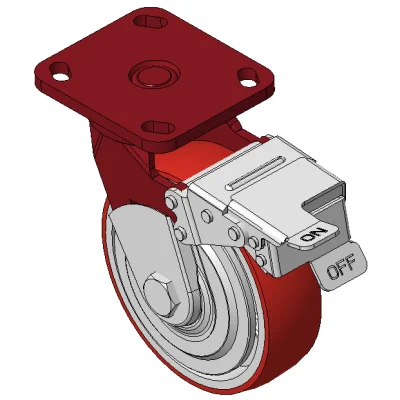 铸铁制轮芯,高品质聚氨酯轮面,铣红色