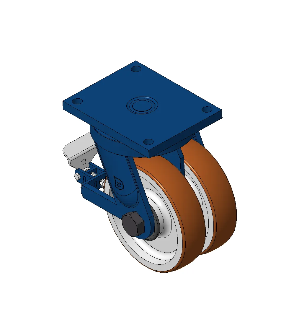 后煞式脚轮,焊接钢板架,表面蓝漆