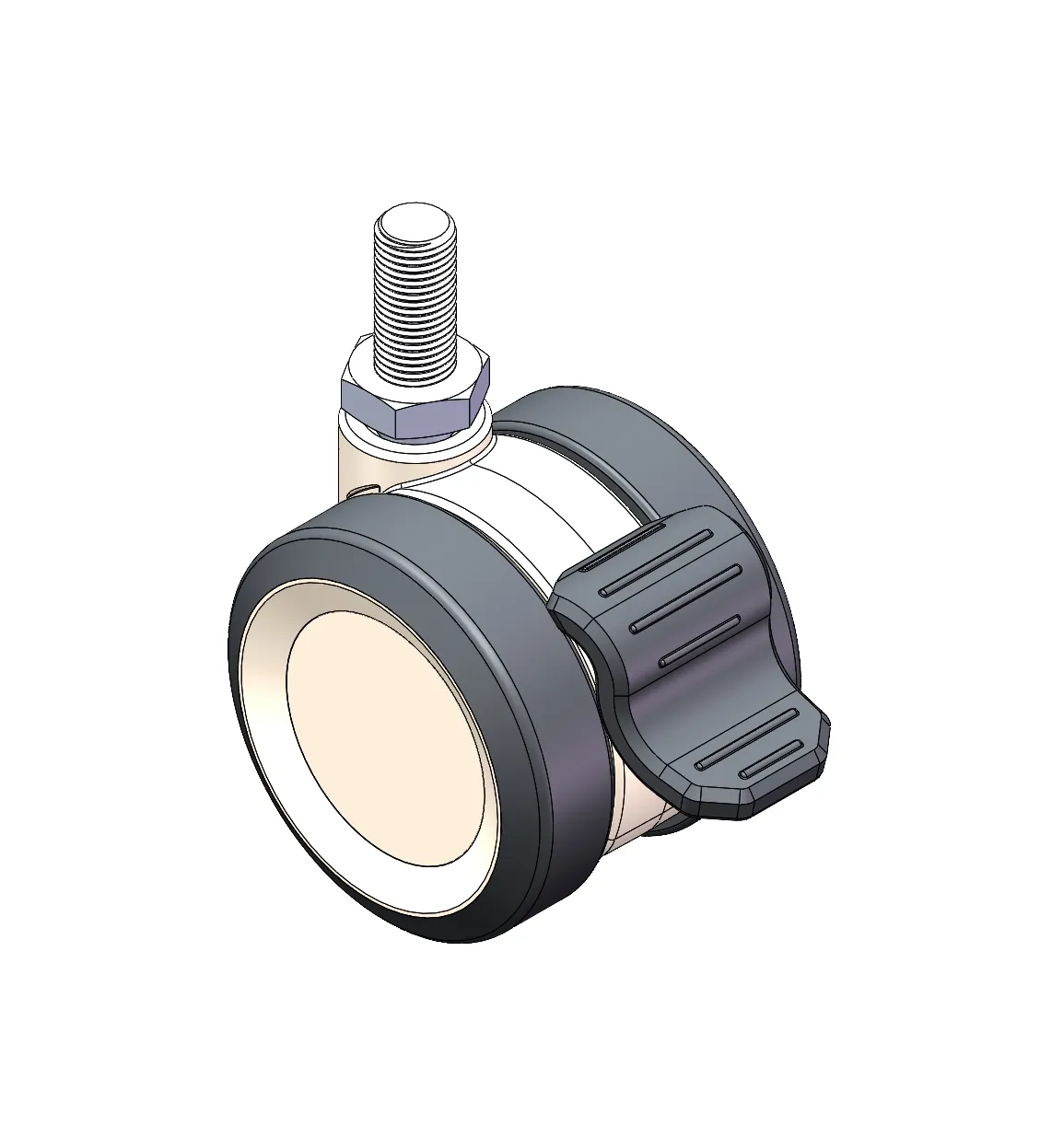 配有单煞式锁定系统的脚轮,牙心铆合注塑轮架—M12-P1.75