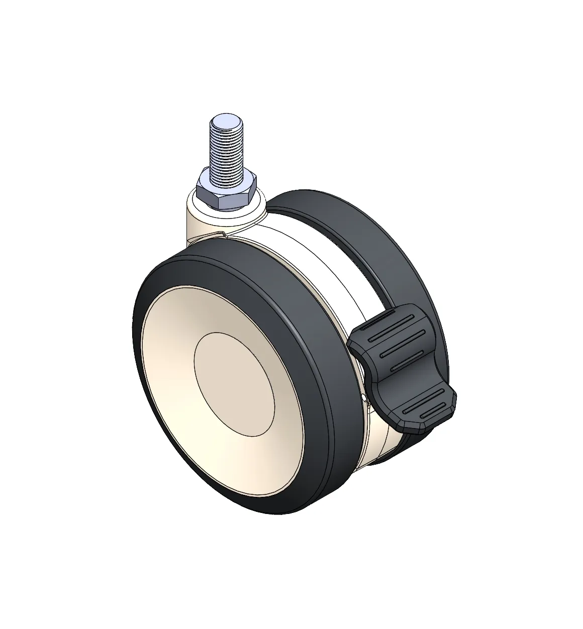 配有单煞式锁定系统的脚轮,牙心铆合注塑轮架—M12-P1.75