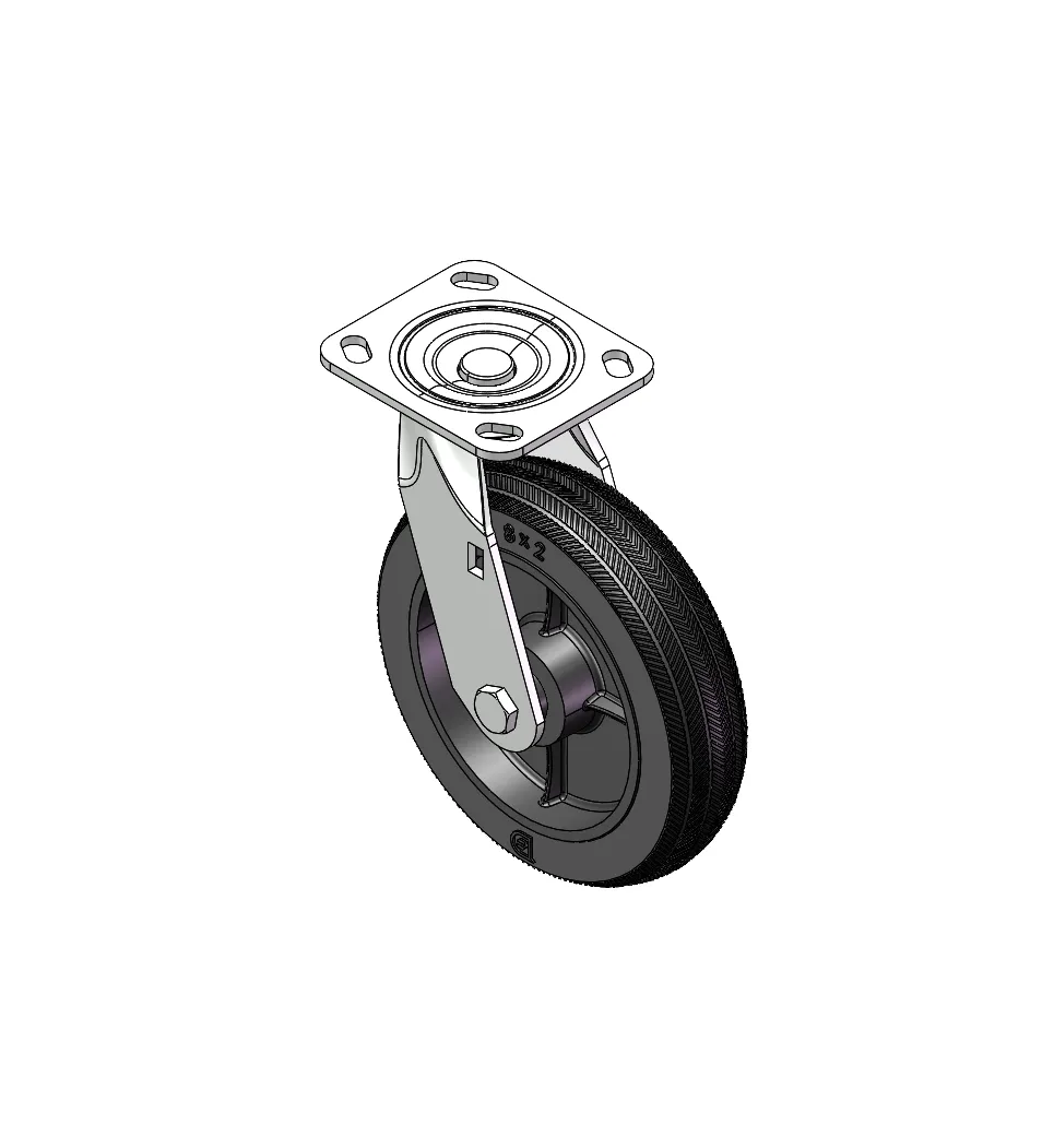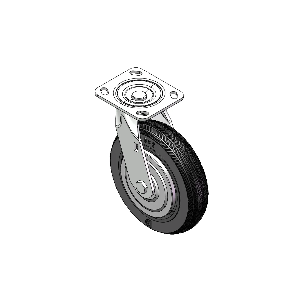 Swivel Caster with Riveted Fork and Stamping Fork with D-shaped hole. Zine-Plated, Top Plate (4.5T) Mounting Type system. Cast Iron Wheel Center with High-Quality Resilient Rubber tread. Iron black, Bearing with Ball Bearing.