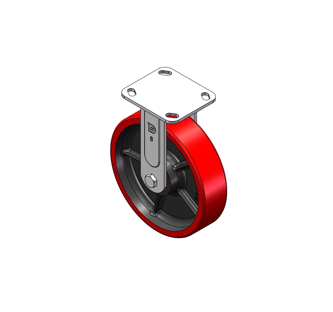 Rigid Caster, Welded-on Fork with 85 x 70mm (3-3/8" x 2-3/4") Bolt Hole Spacing Mounting Type Zine-Plated, Top Plate (4.5T) Mounting Type system Cast Iron Wheel Center with High Quality Polyurethane tread Red Cast Iron finish, Ball Bearing.