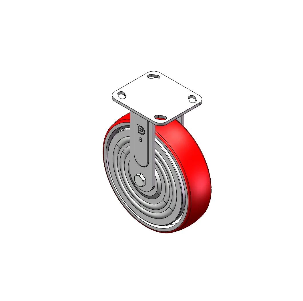 Rigid Caster, Welded-on Fork with 85 x 70mm (3-3/8" x 2-3/4") Bolt Hole Spacing Mounting Type Zine-Plated, Top Plate (4.5T) Mounting Type system Cast Iron Wheel Center with High Quality Polyurethane tread Red Cast Iron finish, Ball Bearing.