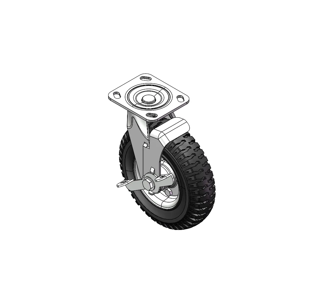 Side (wheel) brake Caster with Locking system. Top Plate Riveted and Stamping D-shaped Fork. Hole Zine-Plated, Top Plate (4.5T) Mounting Type system Q235 Wheel Hub with High-Quality Resilient Rubber tread Black, Bearing with Chrome steel Ball bearing.