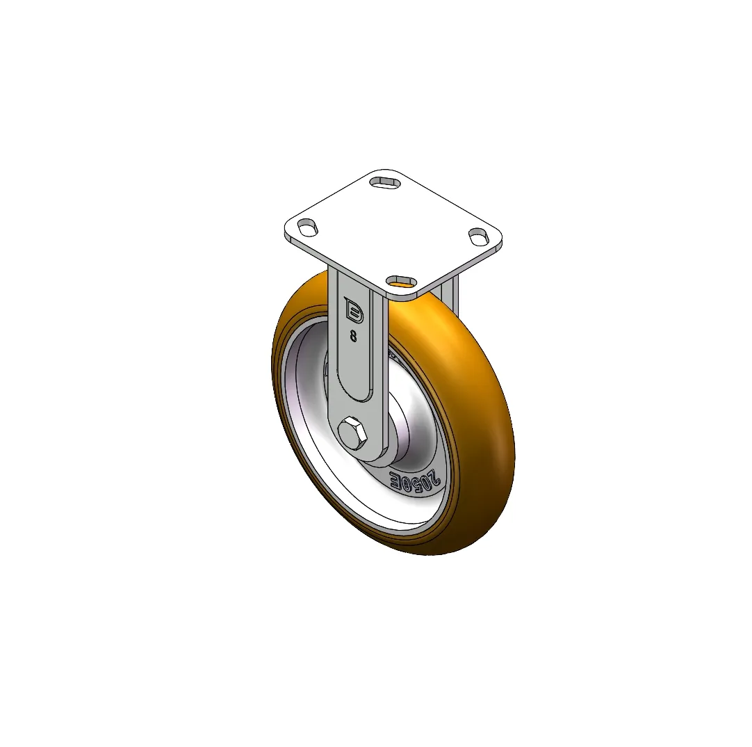 Rigid Caster, Welded Caster Fork with 85 x 70mm (3-3/8" x 2-3/4") Bolt Hole Spacing cutout Zine-Plated, Top Plate (4.5T) Mounting Type system Cast Iron Wheel Center with High Quality Polyurethane tread Iron brown, Bearing with Ball Bearing.