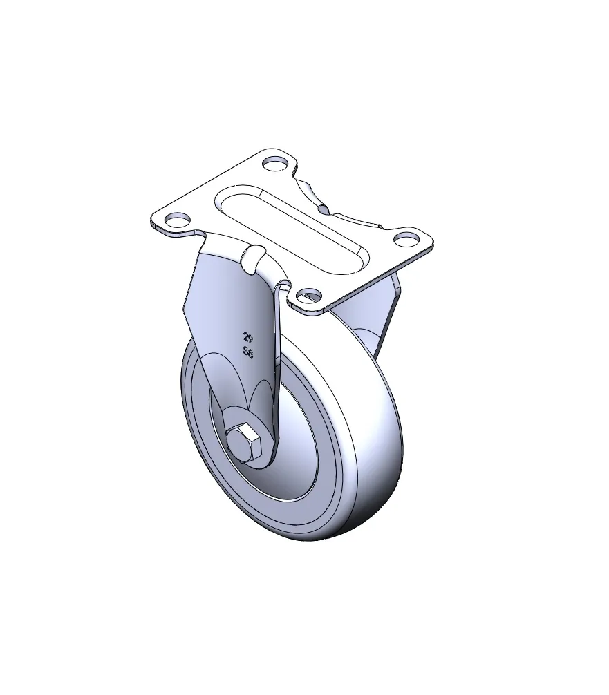 Rigid Caster with integrally molded Stamping footrest and 72 x 53.5 mm (2-7/8" x 2-1/8") Bolt Hole Spacing. Zine-Plated, Mounting Type - Top Plate. Reinforced Polypropylene and Wheel Tread. Bearing - Plain Bearing.