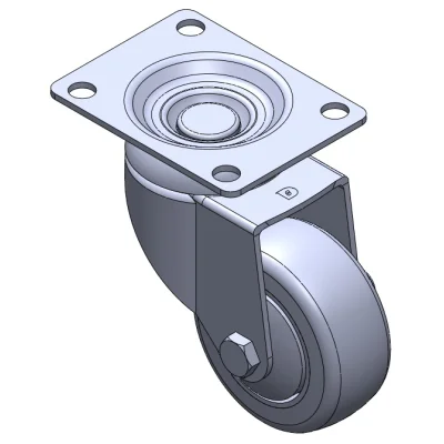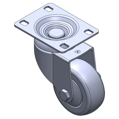 Swivel Casters, Riveted and Stamping Top Plate—high-grade perforated design. Surface vibration protection, Mounting Type - Top Plate. High-Quality Impact-Resistant Polypropylene Wheel Center, High-Quality Reinforced Polypropylene Rubber (TPR) Wheel Tread. Gray, Bearing—Ball Bearings.