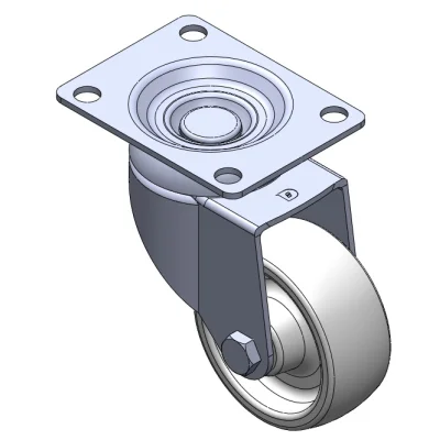 Swivel Casters, Riveted and Stamping Top Plate bracket—72 x 53.5 mm (2-7/8" x 2-1/8") Bolt Hole Spacing Surface vibration, Mounting Type - Top Plate device Reinforced Polypropylene and Wheel Tread White, Bearing—Plain Bearing.