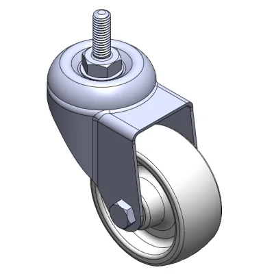 Swivel Casters, Threaded Stem Stamping Fork—3/8"-16 thread; surface vibration resistant, Mounting Type - Top Plate; thermoplastic Wheel Center and rim; white; Plain Bearings.
