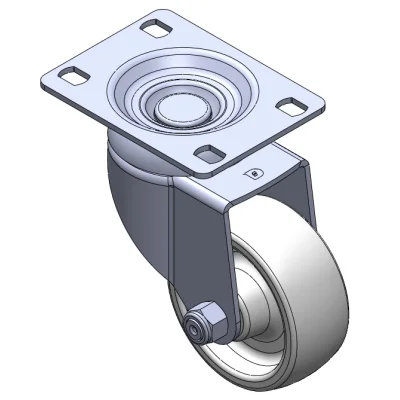 Swivel Casters, Riveted and Stamping Top Plate—high-grade perforated design. Surface vibration, Mounting Type - Top Plate device. Reinforced Polypropylene and rim. White, Plain Bearings.
