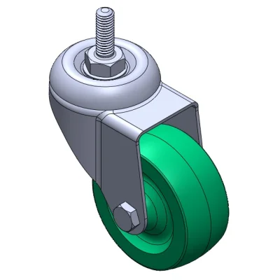 Swivel Casters, Threaded Stem Stamping Fork—3/8"-16 thread; surface vibration, Mounting Type - Top Plate; thermoplastic Wheel Center and rim; green; Plain Bearings.
